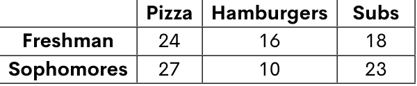 Out of the people that did not choose hamburgers, what is the probability that they are sophomores?