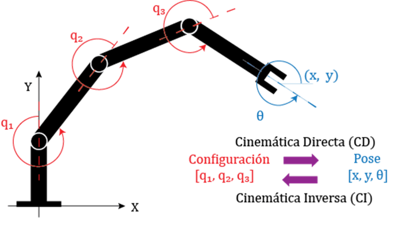 Considerando que las longitudes de cada eslabón son unitarias, determina la cinemática directa del robot