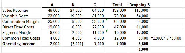 Assuming Common Fixed Costs can be reduced by 30% if product B is dropped, should product b be dropped? What is the affect on profit if product B is dropped?