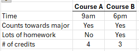 When choosing a course to register for, which of the following is an irrelevant factor: