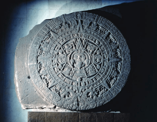 This Sun Stone, or Calendar Stone, shown here, is believed to have been made during this span of years. (Name any year in the range.)