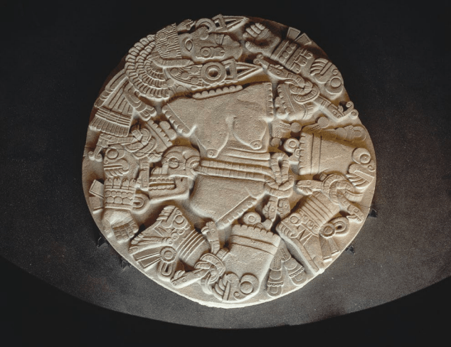 The monolith shown here was found on the Huitzilopochtli side of this temple.