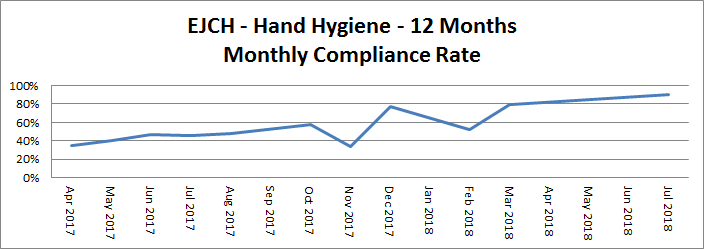 Most recent Hand Hygiene percentage at EJCH