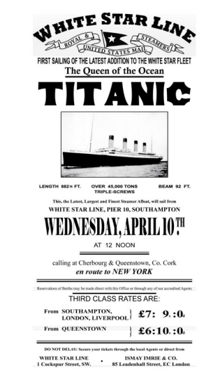 This advertisement for the Titanic includes the words "triple-screws." The artist included these words to make the reader feel this.
