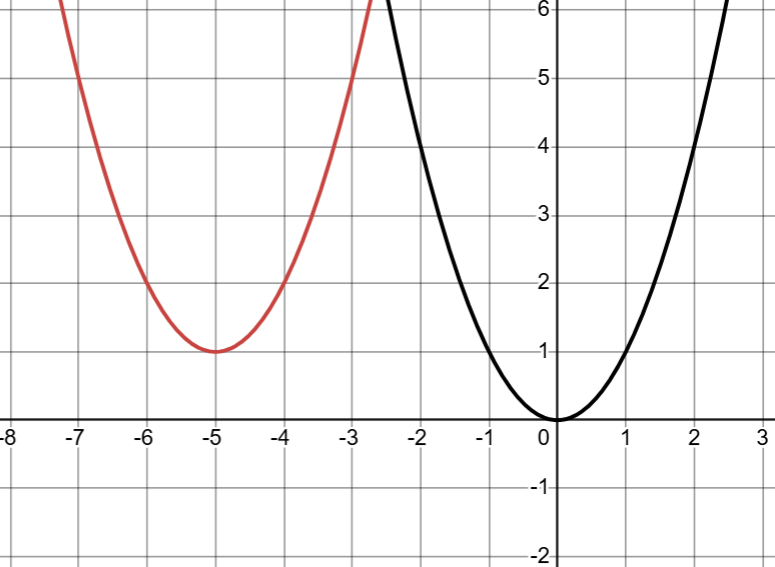 (You don't know an equation for the function graphed in red or black, but your understanding of transformations can still be used to answer this question.) Given the parent function (in black), which we will call  y=f(x) , this is the equation of the blue function after transforming it.