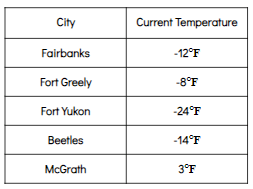 Based on the table of current temperatures in Alaska, which cities are warmer than Fairbanks?
