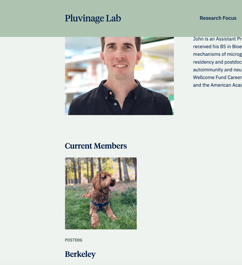 The initial launch of this PI's lab website featured a furry friend, aptly titled the Postdog of the ___ Lab.