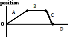 The graph shows the motion of a bug moving in a straight line. The bug has the greatest speed during this time segment.