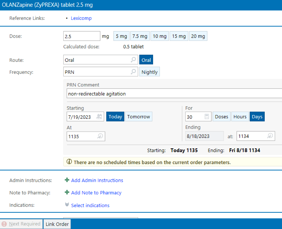 This type of Epic order can be useful in prescribing benzodiazepine or steroid tapers and alternative routes of sedatives for agitation.