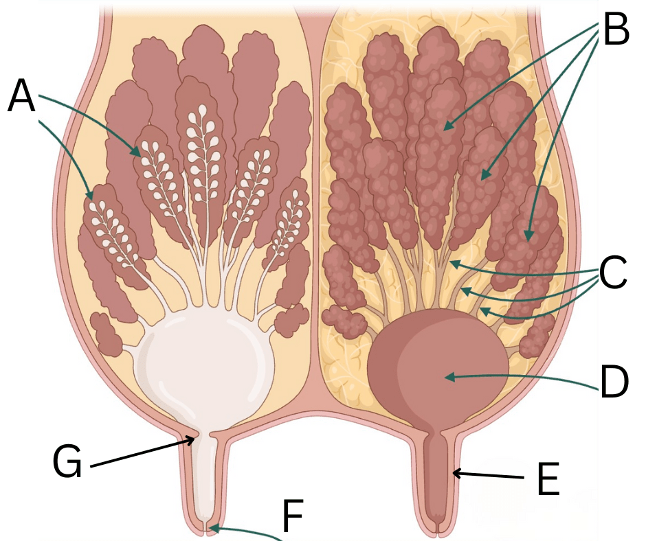 Alveoli, Lumen, Gland Cistern, Sphincter Muscle, Teat, Streak Canal