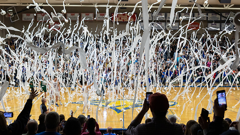 At John Brown University's first basketball game of every season, fans throw this onto the basketball court after the first basket is made