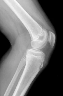 This lateral x-ray image shows a common cause of anterior knee pain in adolescent boy basketball players.
