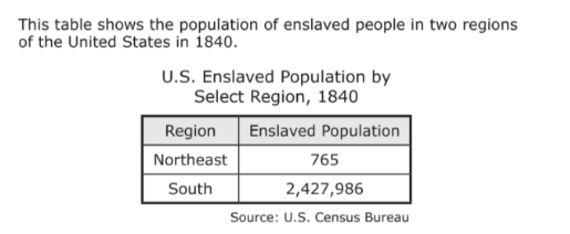 This characteristic of the South MOST contributed to the population difference shown in the table.