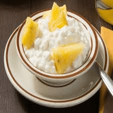 This creamy, soft cheese is made out of cheese curds mixed with cream. It comes in tubs, is usually not with the other cheeses in the grocery store, and can be served alone, with fruit such as pineapple or cantaloupe, or with savory additions like lemon pepper, etc. Hint: it has a kind of small building in its name!