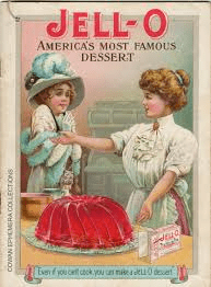This jiggly dessert item, which comes in a lot of red flavors (such as strawberry and raspberry) was first created in 1897. In the 1950s, it became popular to add either sweet or savory things to it to make salads to bring to Pot Lucks and BBQs. In the 1970s, 80s, and 90s, kids would even sometimes get this with their school lunches. What is this red dessert?