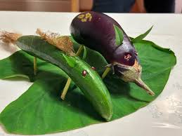 In July, the Obon festival honors ancestors' spirits, and a common offering is these cucumber and eggplant sculptures believed to serve as spirit animals.