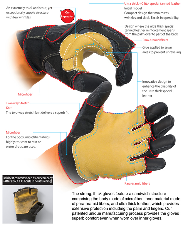 Hoist gloves protect first responders' hands while aboard these vehicles, performing rescues
