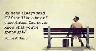 My mama always said, 'Life was like a box of chocolates. You never know what you're gonna get.'