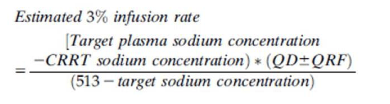 estimated 3% saline infusion rate = (150 − 140) (2200)/(513 − 150) ≈ 60 ml/min