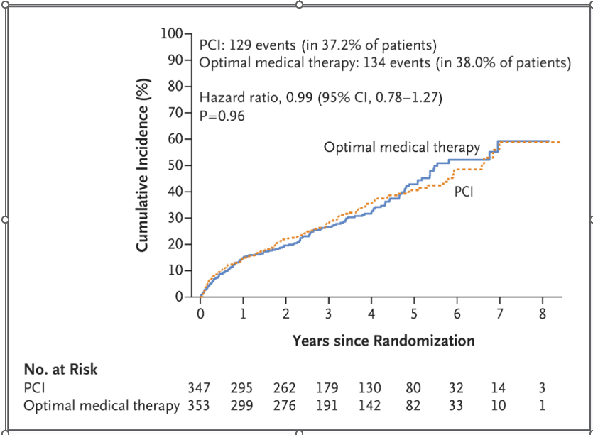 A more recent trial investigating whether revascularization by PIC could improve event free survival and LVEF in patients with severe ischemic LV systolic dysfunction compared with medical therapy alone did not show any benefit of PCI.