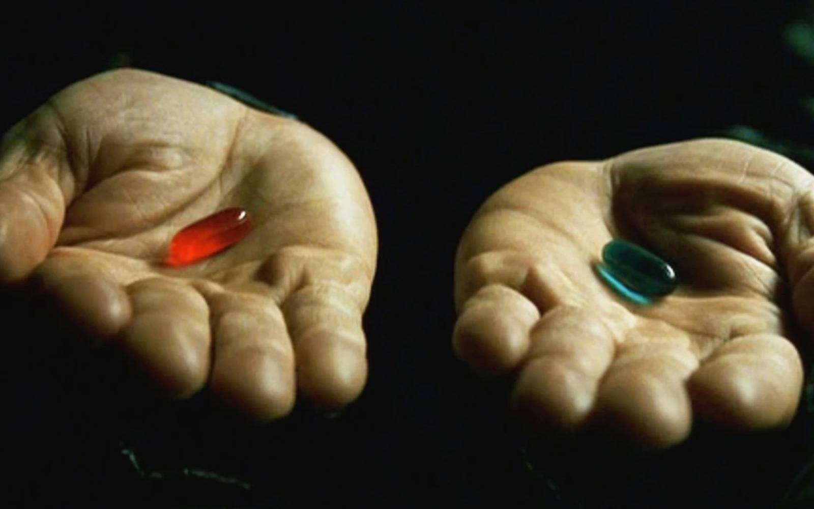 In The Matrix, Neo is offered two pills: which pill did he take?