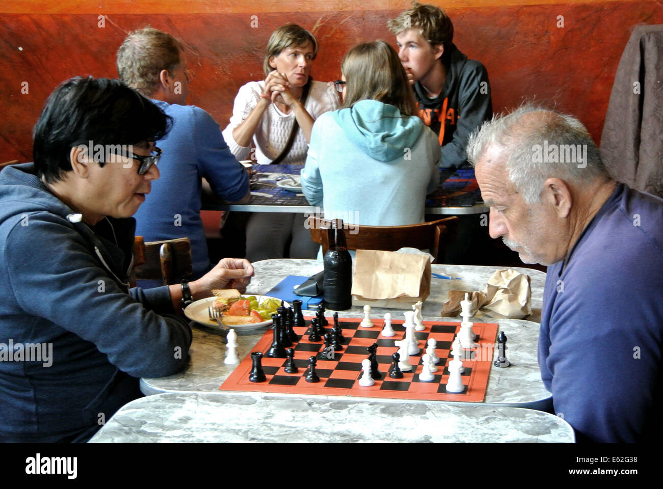 What game are these people playing in the cafe?