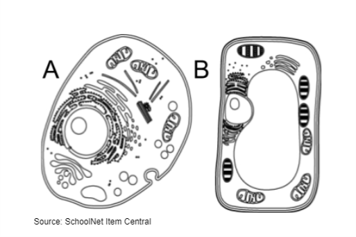 A scientist is examining slides of cells from organisms in different groups. What two features would the scientist use to distinguish a plant cell from an animal cell?