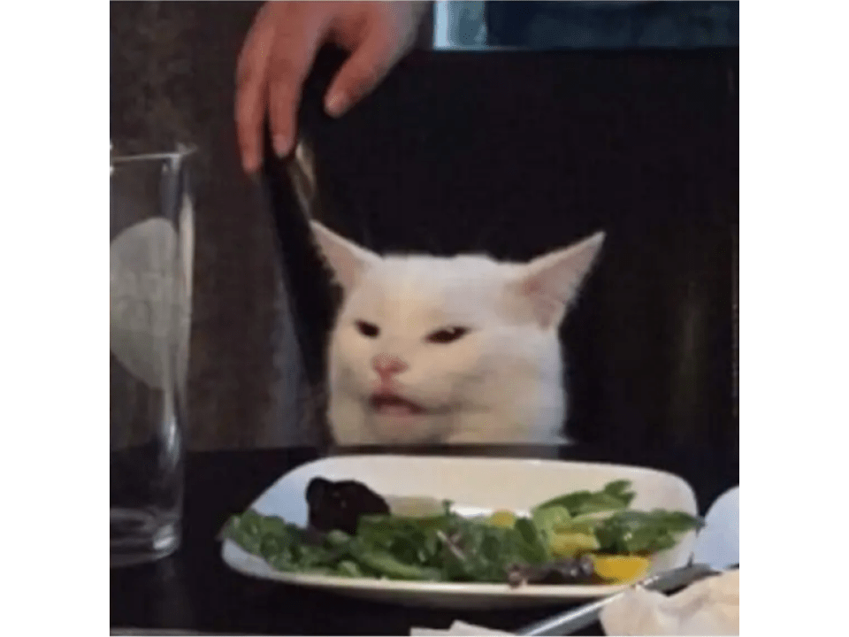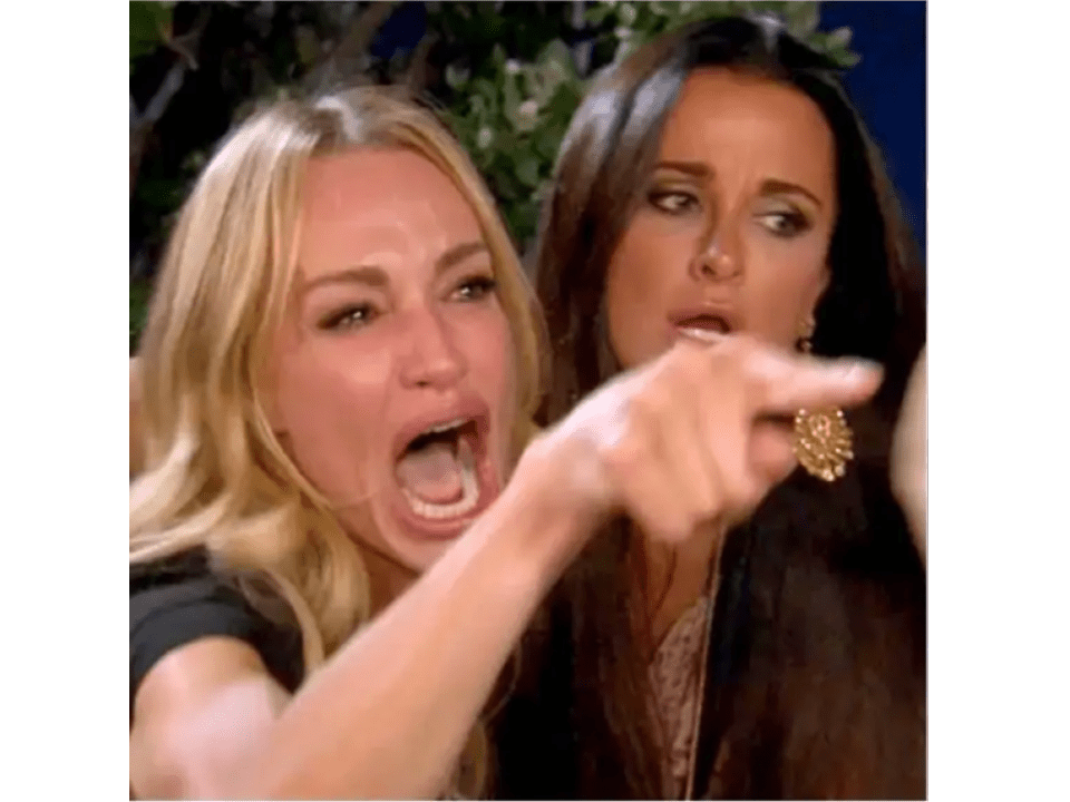 Det som kvinnan i denna meme pekar på.