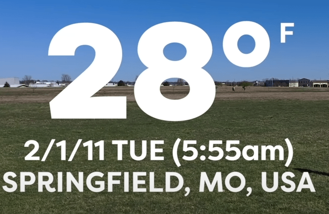 What temperature was it in Fahrenheit at 5:55am on the 1st of Feb 2011 in Springfield, Missouri, USA? (Closest team gets the points, anyone else who enters loses that many points)