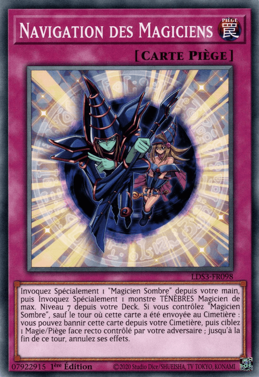 Contre-piège de l'archétype Magicien Sombre, je peux invoquer un magicien depuis le deck quand je suis activée, et je profite aussi d'un effet dans le cimetière.