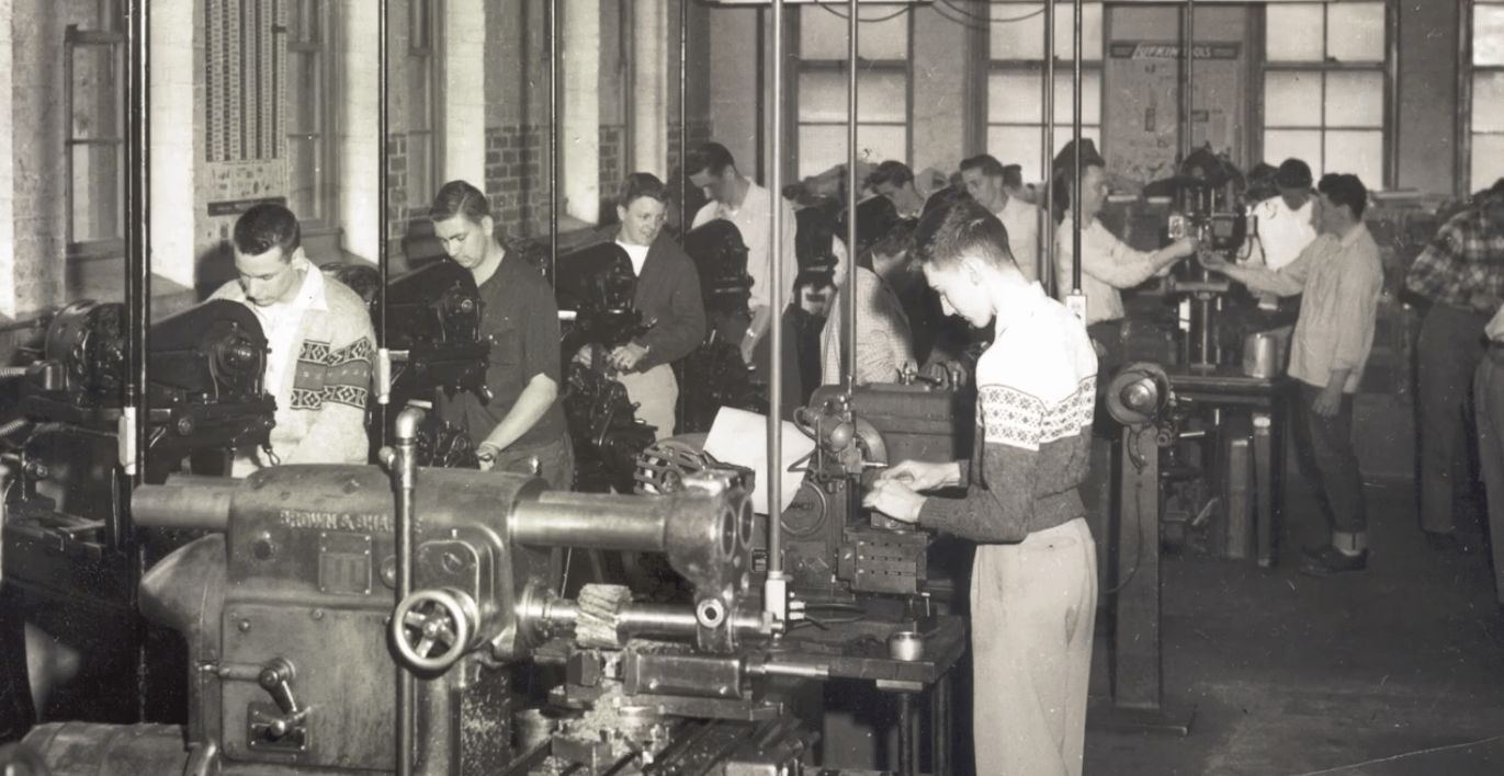 The original name of this building was the "Manual Training Building". This building offered classes in carpentry, woodworking, machinery, and printing.