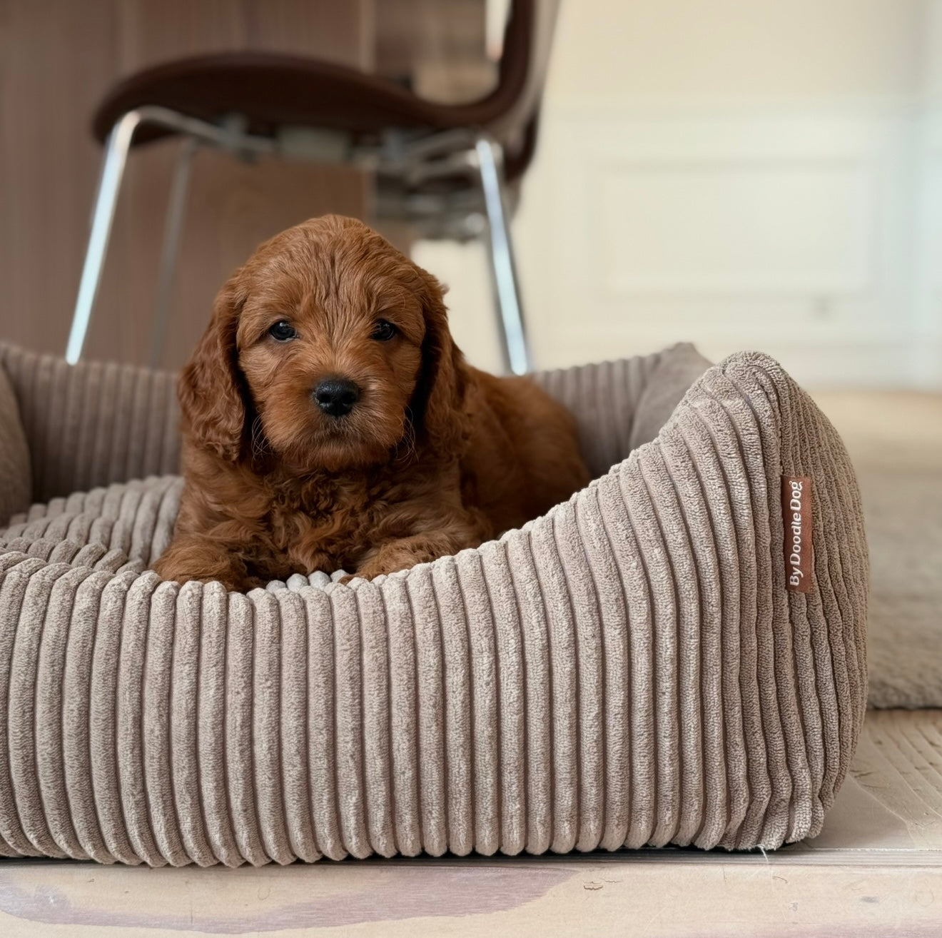 Bjørk hundekurv - Lys brun i bred fløjls fra Bydoodledog.dk