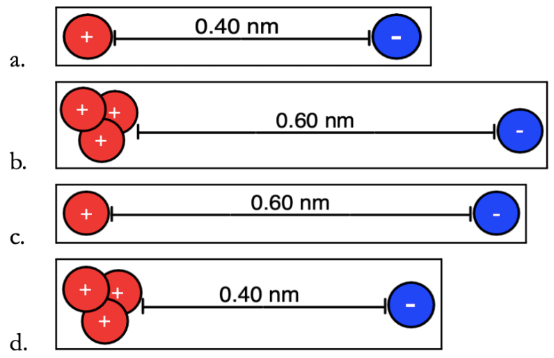 The force of attraction between the electron and the proton shown below is 6.0 N.