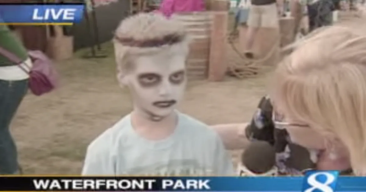 After an awesome face paint job, zombie Jonathan responded to a question from a local news reporter with these 3 words.