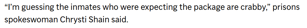 When one of these attempted to deliver a holiday feast to an inmate in a South Carolina prison, guards intercepted and confiscated the surf and turf delivery.