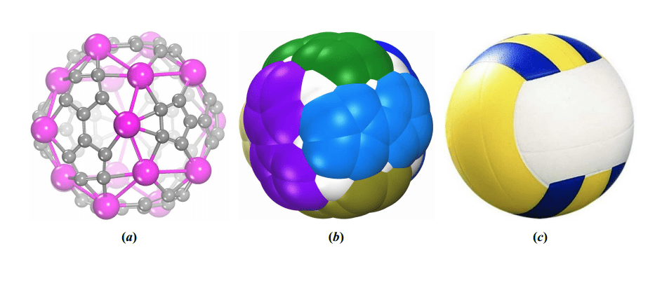 Volleyballene is a hypothetical chemical compound that looks like a volleyball. This defensive volleyball player wears a different-coloured shirt.
