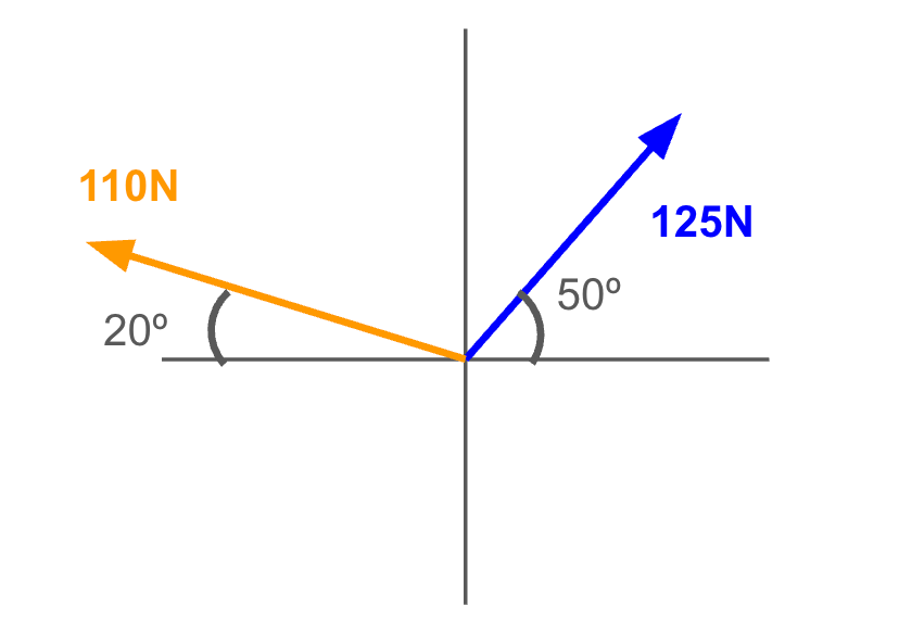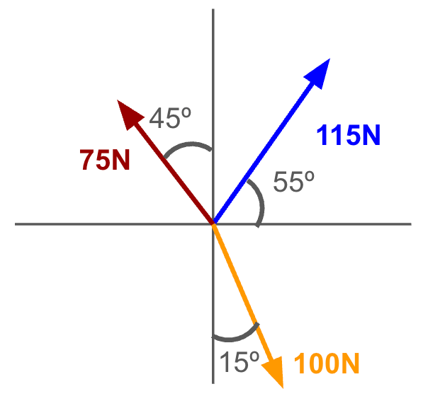 The direction of a resultant vector that goes through the third quadrant of a coordinate plane