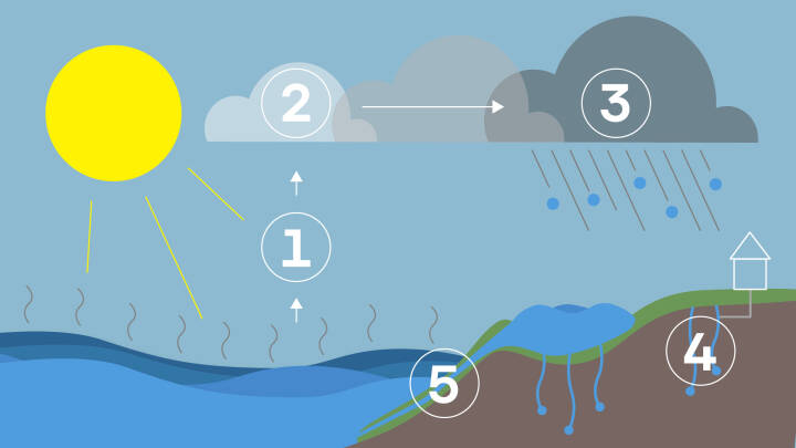 Ved hvilken proces flytter vand fra jorden sig op som skyer?
