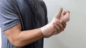 A él le duele la muñeca.