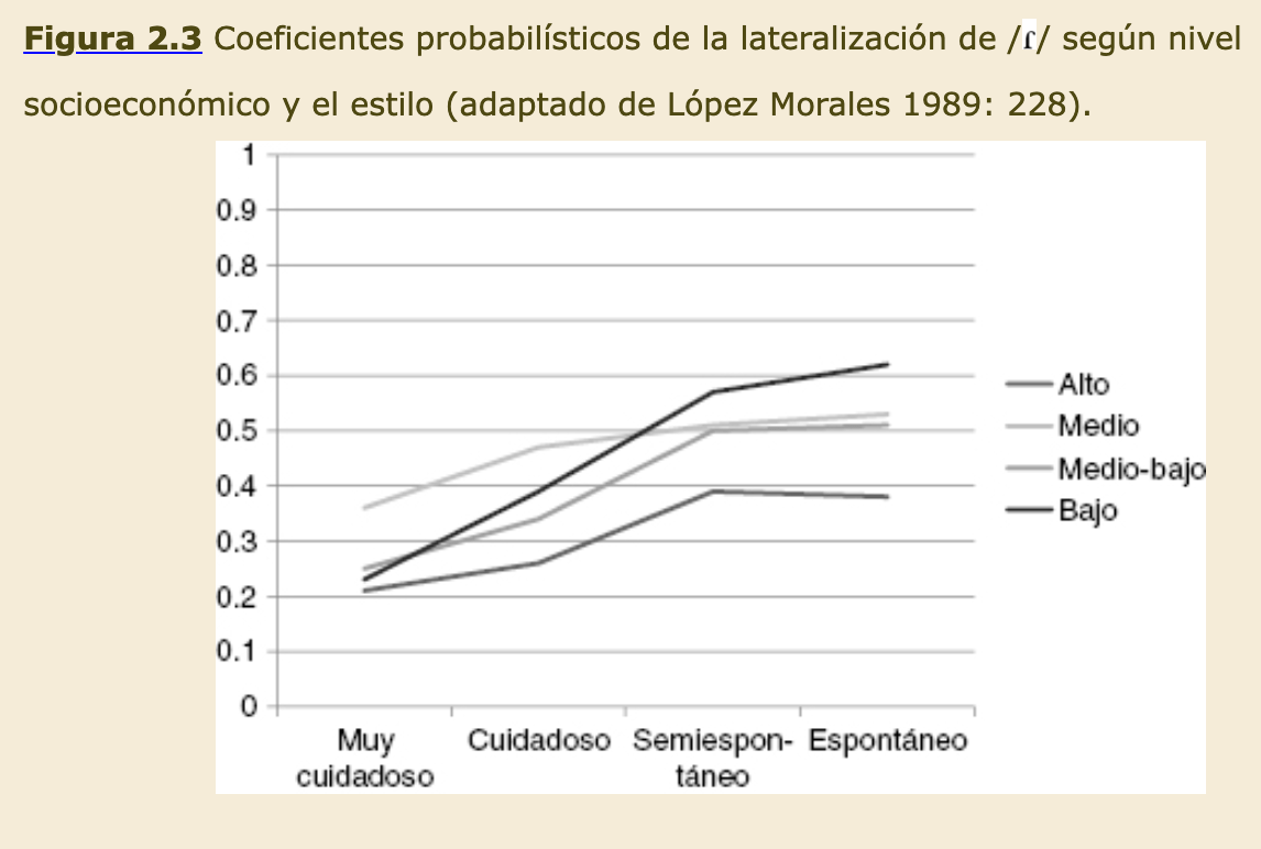 un fenómeno lingüístico cuya producción muestra estratificación social y estilística, es favorecido por las personas mayores y no muestra diferencias según el género. En algunos casos, se observa mayor uso entre los hombres.