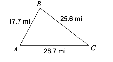 Remember to do law of cosines TWICE.  Do not go back to law of sines.