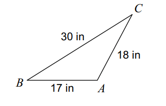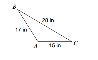 a = 28 in,   b = 15 in,   c = 17 in