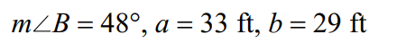 Find TWO angle A's for the triangles in which: