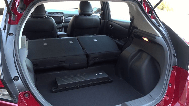 What is 23.6 cubic feet (vs. Chevy Bolt’s 16.9 cubic feet). LEAF has a total of 30.0 cubic feet of storage space with the rear seatbacks folded.