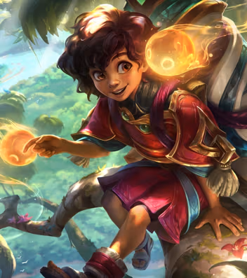 A small child, gifted with the ability of fire, who has a shield on their E ability that grants movement speed.