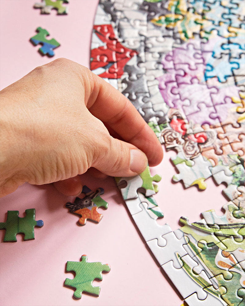You do this on a table with pieces that fit together.