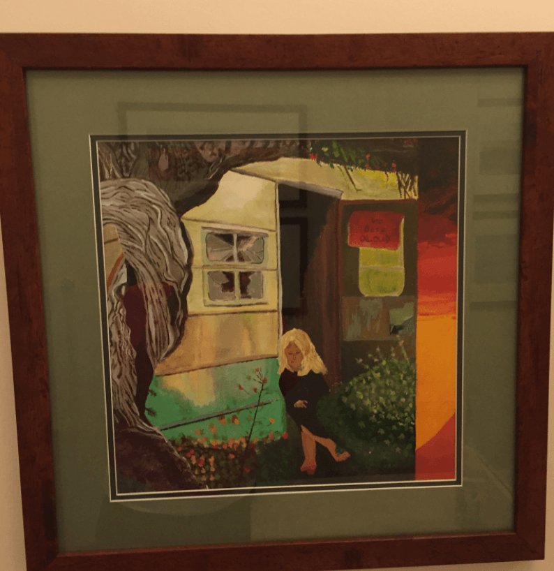 A print of this oil on canvas was located in which room of the Crest house, and was painted by which French impressionist?