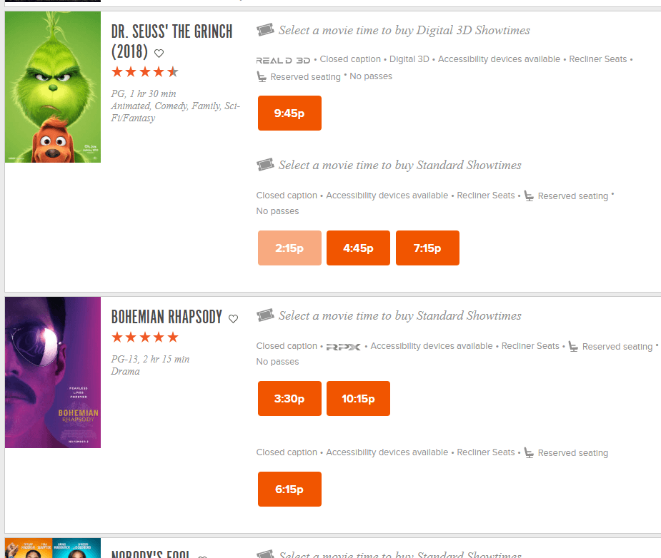 A quelle heure est le film "Dr. Seuss' The Grinch" version REAL 3D?