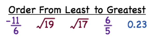 -11/6 ,   0.23,  √17,  √19,   6/5