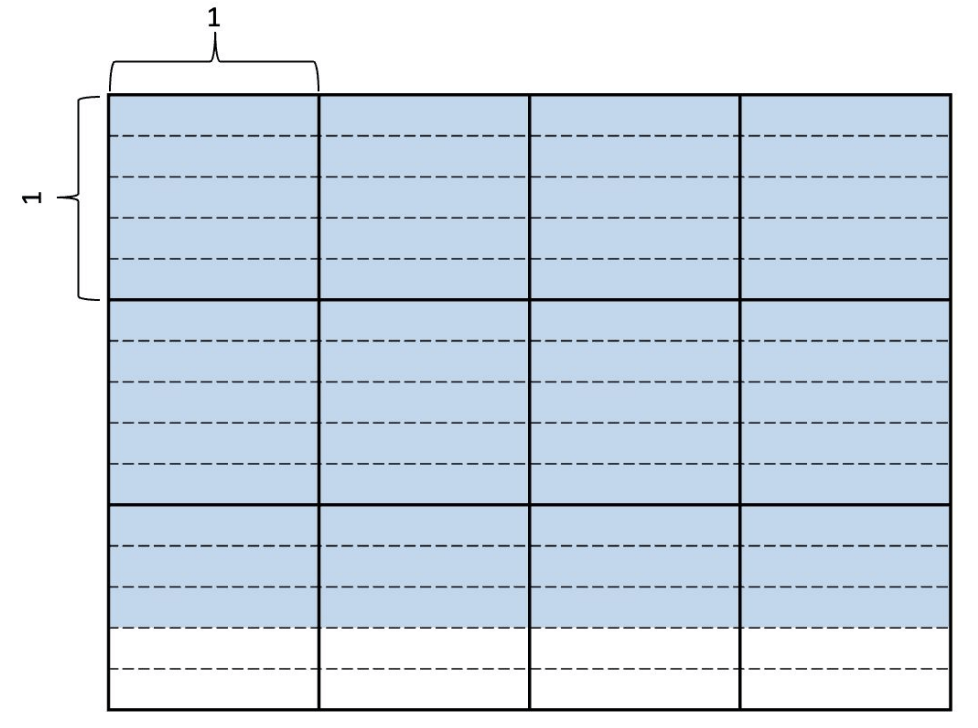 A division equation that matches the area of the shaded region.